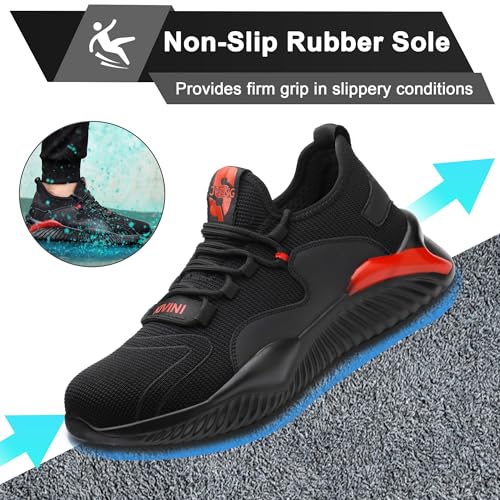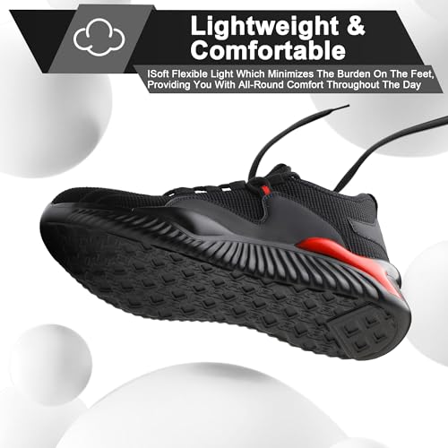 Arbeitsschuhe Damen Herren Leicht Stahlkappenschuhe Damen Safety Shoes Women Arbeitsschuhe Küche Damen Arbeits Berufsschuhe Hallenschuhe Damen Schuhe Schwarz Rot 39EU