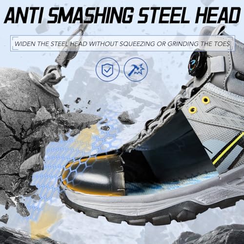 Arbeitsschuhe Herren Sicherheitsschuhe mit Stahlkappe Drehknopf Unisex Stoßfest Durchstichfest rutschfest Atmungsaktiv für Baubranche & Industrie Arbeitsstiefel für Frauen