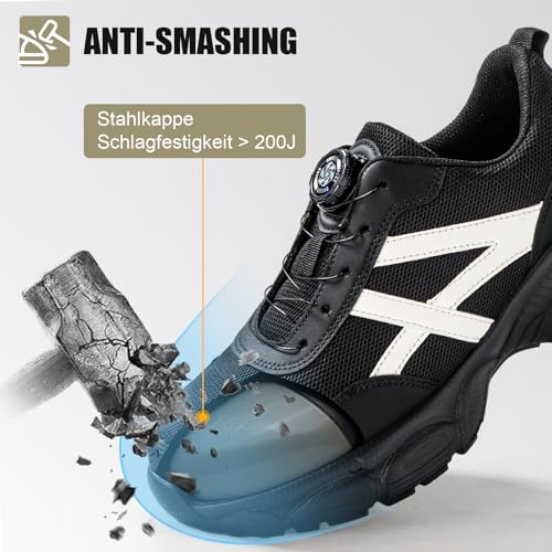 AUTESS Arbeitsschuhe Sicherheitsschuhe Herren Damen Leicht Stahlkappenschuhe rutschfeste Arbeitsschuhe mit Drehschnalle Schnürsenkeln Atmungsaktiv
