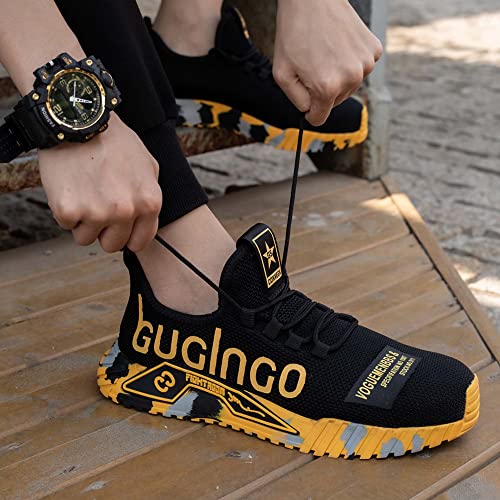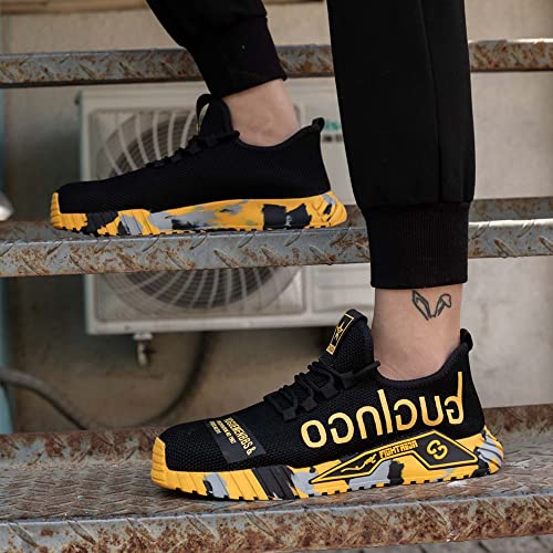 Ayqyc Sicherheitsschuhe Herren Damen S3 Sportlich rutschfeste Arbeitsschuhe mit Stahlkappe Leichtgewich Breathable Schutzschuhe,Gelb,Size 44
