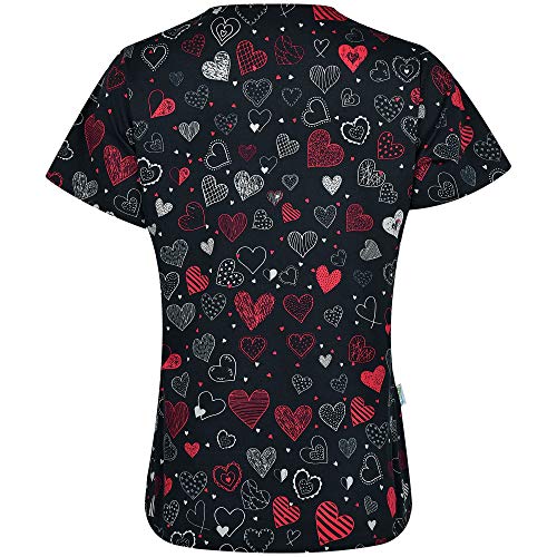 B-well Bambina Schlupfkasack Damen Kasack Kurzarm V-Ausschnitt Kasacks Damen Pflege (Rote Herzen, M)