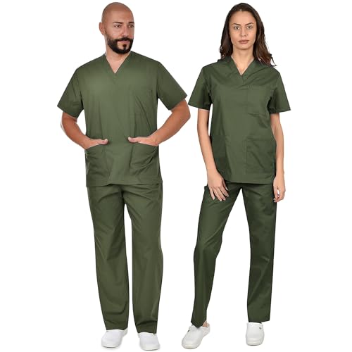 B-well Cesare Unisex-Schrubb-Set Schlupfkasack + Schlupfhose Set Medizin Arzt Uniform Schlupfjacke Oberteil mit Hose Medizinische Berufsbekleidung – Leichter Stoff (Olive, M)