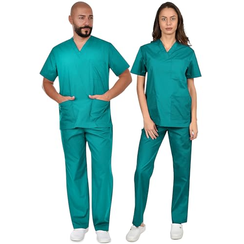 B-well Cesare Unisex-Schrubb-Set Schlupfkasack + Schlupfhose Set Medizin Arzt Uniform Schlupfjacke Oberteil mit Hose Medizinische Berufsbekleidung Teal L
