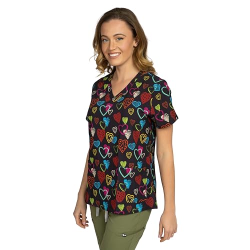 B-well Isabella Kasacks Damen Pflege mit Spandex, Kasack Damen Motiv (bunte Liebe, XL)
