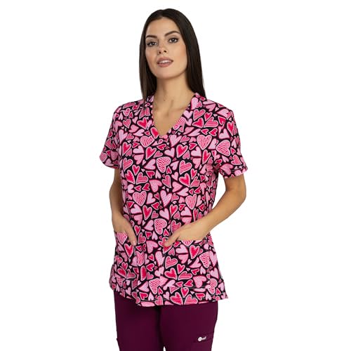 B-well Isabella Kasacks Damen Pflege mit Spandex, Kasack Damen Motiv (Rosa Herzen, XL)