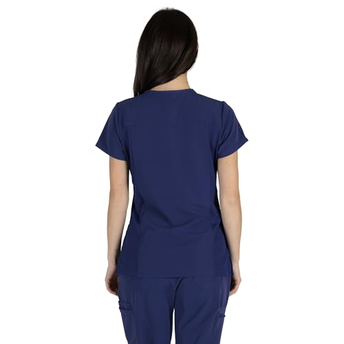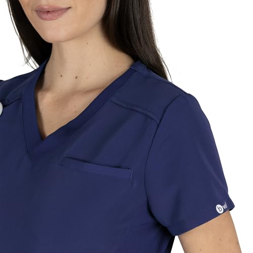 B-well Julia Kasacks Damen Pflege Altenpflege Kasack Berufskleidung Kurzarm V-Ausschnitt Anti-Falten Elasthan (DE/NL/SE/PL, Alphanumerisch, S, Regular, Dunkelblau)