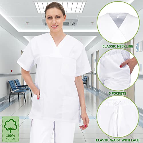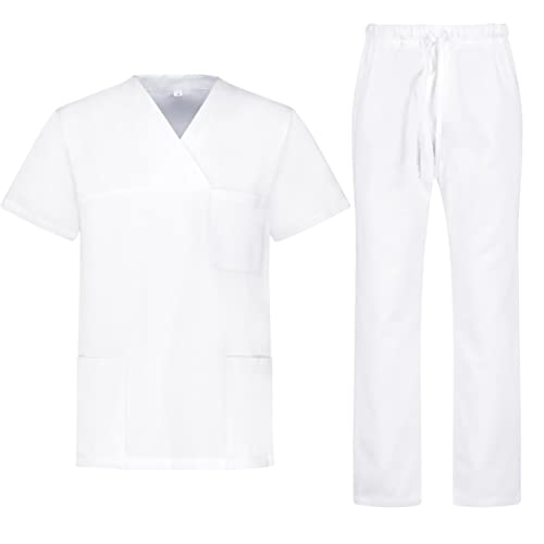 B-well Morelli 100% Baumwolle Unisex-Schrubb-Set Schlupfkasack + Schlupfhose Set Medizin Arzt Uniform Baumwolle Oberteil mit Hose Medizinische Berufsbekleidung (Weiss, S)