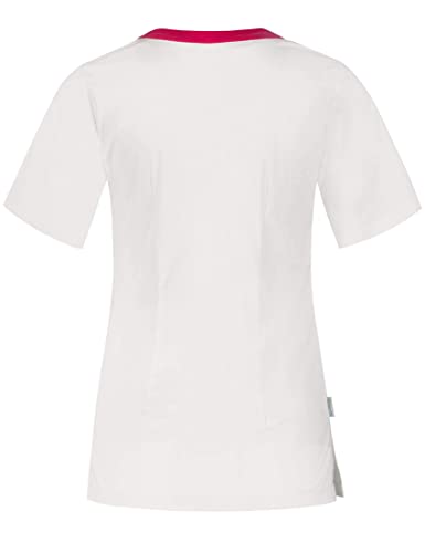 B-well Paola Kasack Damen Weiß V-Ausschnitt Schlupfkasack Kasack Damen Pflege Medizinische Berufsbekleidung (Weiß/Rosa, 50)