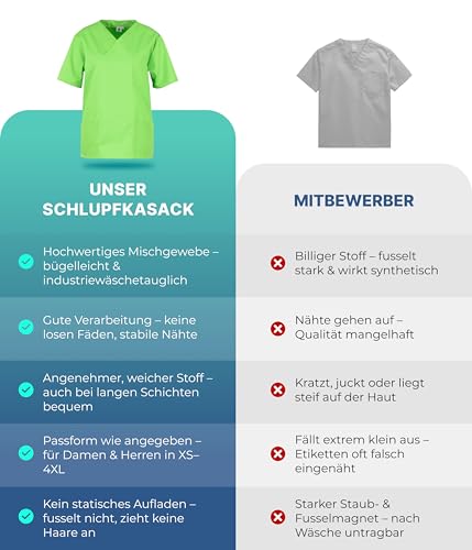 beb™ Schlupfkasack Apple Unisex – Kasack für Damen & Herren mit V-Ausschnitt, 3 Taschen & Seitenschlitzen – bügelleichtes Mischgewebe 65% Polyester / 35% Baumwolle – ideal für Pflege & Klinik