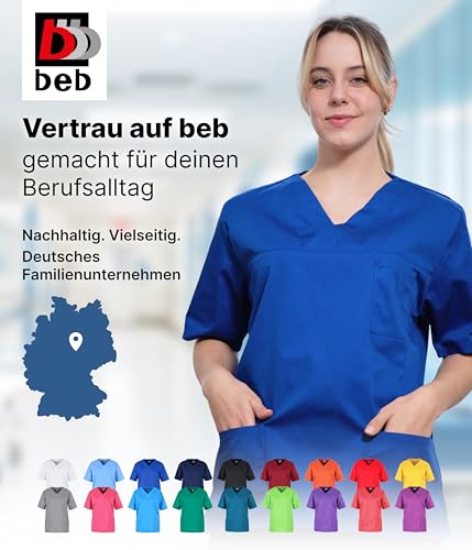 beb™ Schlupfkasack Kornblau Unisex – Kasack für Damen & Herren mit V-Ausschnitt, 3 Taschen & Seitenschlitzen – bügelleichtes Mischgewebe 65% Polyester / 35% Baumwolle – ideal für Pflege & Klinik