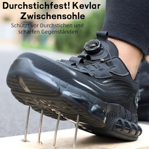 bergxperten WERKSTEIN S3 Pro: Gemacht für Sicherheit & ganztägigen Komfort Sicherheitsschuhe Herren & Damen mit Drehknopf Anti – Smash, Anti – Punktur, rutschfest, Atmungsaktiv für Industrie – Arbeit