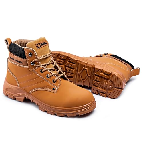 BLACK HAMMER Herren Sicherheitsschuhe S3 Arbeitsschuhe & Stiefel im Freien Industrie Schuhe Lederstiefel Schuhe für Männer Stahlkappenschutz Knöchelstütze Wasserabweisend Wildleder Braun 6007 (42 EU)