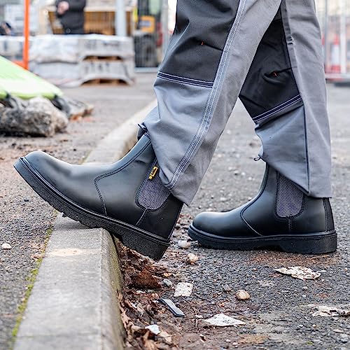 BLACK HAMMER Slip-On Sicherheitsstiefel Herren Chelsea Arbeitsschuhe Leder Stahlkappe Arbeit Knöchel Leichte Schuhe S3 SRC 1600 Schwarz (44 EU)