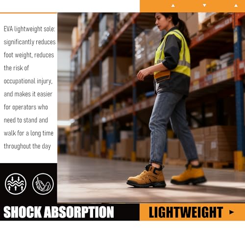 BOKRYE Leichte Sicherheitsstiefel mit Stahlkappe & Arbeitsstiefel für Herren Damen – Bequeme atmungsaktive Sicherheitsschuhe Rutschfeste Sohle Gelb 39EU