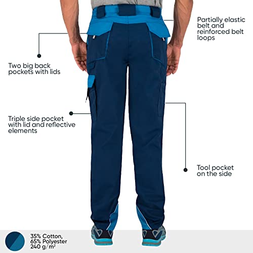 BWOLF Brave Arbeitshosen Männer Arbeitshose Herren Arbeitshose mit multifunktionalen Seitentaschen, Rückentaschen und Kniepolster-Taschen + verstärkt mit 600D Polyester (Blau, M)