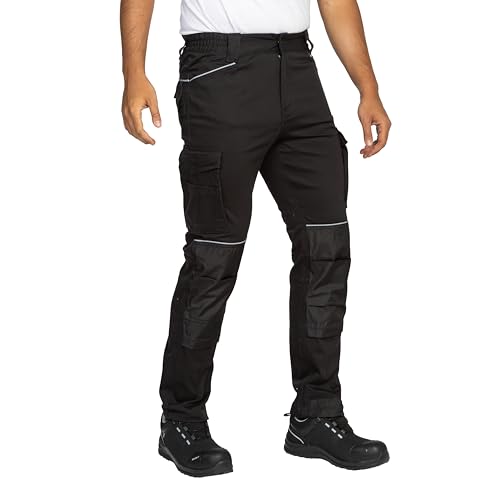BWOLF Daytona Arbeitshosen Männer Stretch Arbeitshose Herren Arbeitshosen Cargo Arbeitskleidung Männer mit vielen Taschen (Schwarz, L)
