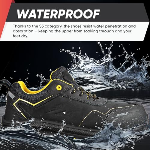 BWOLF Phoenix S3S Arbeitsschuhe Herren S3 Sicherheitsschuhe Herren S3 Nabuk wasserdicht, rutschhemmend 4×4 Grip Tech, Ergo Sohlen (Schwarz, EU Schuhgrößensystem, Erwachsene, Numerisch, M, 43)