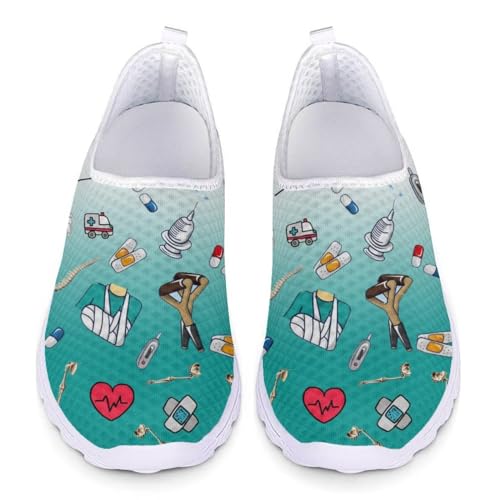 Chaqlin Damen Laufschuhe Medizinischer Krankenschwester Arbeitsschuhe Leichtathletik Fitness-Sportschuhe – eine vielseitige Wahl für Beruf und Freizeit. Das Obermaterial besteht aus Mesh mit Löchern, das für eine atmungsaktive Belüftung sorgt und auch bei längeren Einsätzenkomfort bietet. Der Reinschlupf-Verschluss ermöglicht ein schnelles An- und Ausziehen, ideal während Arbeitsrhythmen oder Trainingseinheiten. Geeignet für Damen und Herren, geeignet für Sport, Straßenlauf, Joggen, Freizeit, Reisen und Walking. Die Schuhe passen sich unterschiedlichen Fußformen an, unabhängig von der Marke lassen sich Größenangaben beachten, inklusive Damengrößen. Personalisierte Designs sind möglich – kontaktieren Sie uns vor der Bestellung, um individuelle Farbwünsche oder Motive zu berücksichtigen. Bitte beachten Sie kleine Farbnuancen aufgrund von Kamera- oder Lichtverhältnissen. Diese Schuhe vereinen Leichtigkeit, Atmungsaktivität und Alltagstauglichkeit – perfekt für medizinische Fachkräfte, Pflegepersonal und alle, die lange stehen oder gehen müssen.