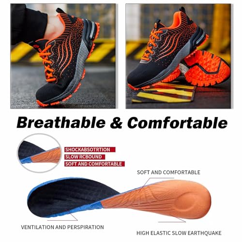 CYKYGGO Arbeitsschuhe Herren Sicherheitsschuhe Damen Leicht Sportlich Stahlkappe mit Dämpfung Stahlkappenschuhe rutschfest Atmungsaktiv Sneaker Orange 42