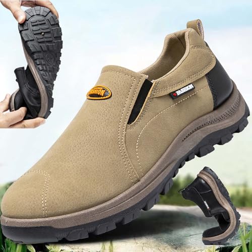 Dasongff Bau- und Industrieschuhe für Herren, leicht, atmungsaktiv, Sneaker, Sicherheitsschuhe, Stahlkappe, modisch, bequem, rutschfest, Sicherheitsschuhe, kaki, 42 EU