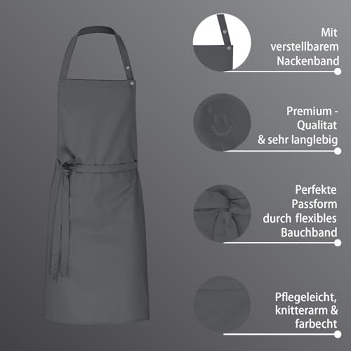 DESERMO 10er Set Premium Latzschürze 90x80cm (LXB) – Verstellbare Küchenschürze für Frau & Mann – Kochschürze aus 35% Baumwolle / 65% Polyester – 210g/m² – Anthrazit