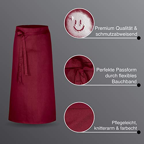 DESERMO 10er Set Premium Vorbinder 100cm x 100cm (L X B) – Hochwertige Profi-Schürze für Frau und Mann – Innovative Mischung aus Baumwolle und Polyester – 220g/m² (Bordeaux)
