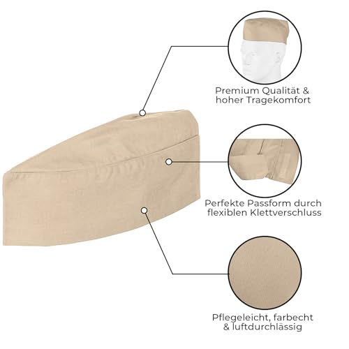 DESERMO Gastro Schiffchen verstellbar mit Klettverschluss | Hochwertige Profi Küchen-Mütze | Für Frau & Mann passend für alle Größen | Große Farbauswahl | 220g/m²