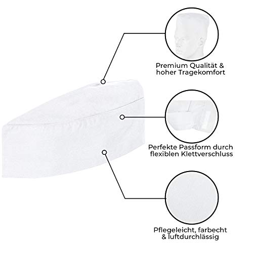 - FÜR PROFIS – Von Profis für Profis! Nutzen Sie die DESERMO Kochmütze, in allen Gastronomie-Bereichen für professionelles Auftreten und hohe Hygienestandards. Zusätzlich wird aufgrund der speziellen Materialzusammensetzung ein kühler Kopf gewährleistet.