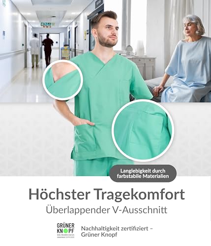 Dieckhoff® OP-Kasack Unisex, Schlupfform, V-Ausschnitt – Langlebig & atmungsaktiv – ideal für Klinik, Pflege & Bestatter mit Taschen – Berufskleidung Damen & Herren – Grüner Knopf Zertifiziert
