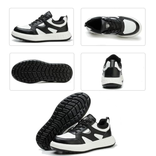 DUNPAI Sicherheitsschuhe Herren Arbeitsschuhe Damen Leicht Sportlich Stahlkappenschuhe Schwarz Weiß 43 EU – zuverlässiger Schutz und ganzer Komfort für jeden Arbeitstag. Diese Sicherheitsschuhe kombinieren professionellen Arbeitsschutz mit leichtem Tragegefühl und modernem Design, ideal für Berufstätige, die viel zu Fuß unterwegs sind oder lange stehen. Die europäisch zertifizierte Stahlkappe schützt den Fuß vor Aufprallkräften, während die Kevlar-Zwischensohle Durchtrittskräften bis 15 KN standhält – so bleiben Zehen und Mittelsohlen auch bei anspruchsvollen Einsätzen sicher. Dank der leichten Bauweise reduzieren sie spürbar den Belastungsdruck auf Füße und Gelenke, was langes Stehen und Gehen deutlich angenehmer macht. Die hochelastische EVA-Gummisohle bietet eine ausgezeichnete Verschleißfestigkeit sowie Dreidimensionalität der Anti-Rutsch-Struktur, damit Sie auch auf glatten oder unebenem Untergrund einen festen Stand bewahren. Die Schuhe überzeugen darüber hinaus durch ein sportliches, unaufdringliches Design, das sich flexibel in Arbeitsumgebung und Alltag integrieren lässt. Geeignet für verschiedenste Einsatzbereiche – vom Werk über Montage bis hin zum täglichen Arbeitsweg – und in der Passform für Damen und Herren geeignet. Mit diesem Schuhpaar schützen Sie Ihre Füße zuverlässig, ohne auf Stil oder Bewegungsfreiheit zu verzichten.