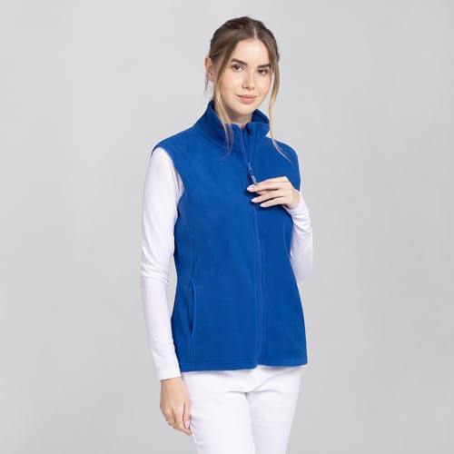 EXNER Damen-Fleeceweste, Ärmellos, Stehkragen, Seiteneingrifftaschen, Zipper, royal blue, Größe XS