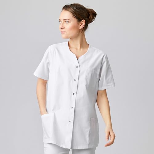 - Ausstattung: Die Kasacks verfügen über 1 aufgesetzte Tasche im Brustbereich und 2 aufgesetzte Seitentaschen, perfekt für ein Stethoskop, einen Arbeitsausweis, eine Stoppuhr oder einen anderen wichtigen persönlichen Gegenstand, der immer griffbereit sein soll
