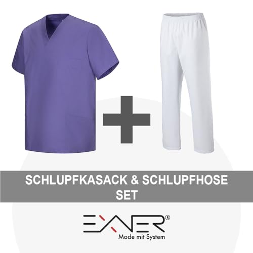EXNER Medizin Kasack Set – Kasack & Hose für Damen und Herren, Pflegebekleidung Set in 26 Farben, Oberteil farbig + Hose weiß, Schlupfkasack & Schlupfhose, XS–5XL