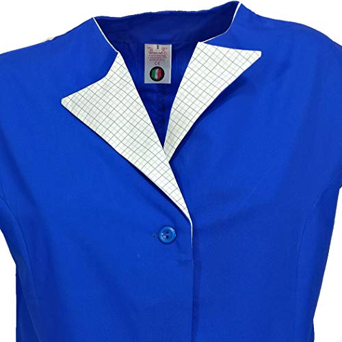 Leichter, ärmelloser Damen-Kittel aus Italien mit mittigem Knopfverschluss, atmungsaktivem Stoff und pflegeleichter Waschbarkeit. Ideal für Sommerjobs und professionelles Auftreten.