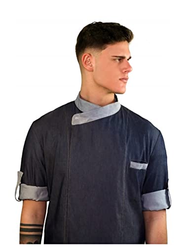 Die Jacke Kasack Herren Chef Kochbekleidung von fratelliditalia.org verbindet funktionale Robustheit mit einem modernen Look. Ideal für Küche, Bar und serviceorientierte Bereiche bietet sie zuverlässigen Schutz und ein angenehmes Tragegefühl – auch bei längerem Einsatz. Dank der Jeans-Optik wirkt sie stylisch und professionell zugleich, sodass sie sich nahtlos in den Arbeitsalltag integrieren lässt. Die Ärmel sind kürzbar, sodass Sie die Passform individuell an Ihre Tätigkeiten anpassen können. Druckknöpfe ermöglichen schnelles An- und Ausziehen sowie eine einfache Reinigung, während die Brusttaschen zusätzlichen Stauraum für Notizen oder Küchenwerkzeuge bieten. Die Stoffzusammensetzung aus 97% Baumwolle und 3% Elasthan sorgt für Strapazierfähigkeit, Bewegungsfreiheit und Tragekomfort bei allen Küchen- oder Bararbeiten. Geeignet für den professionellen Einsatz in Bereichen der Berufsbekleidung, wo Hygiene, Komfort und eine gepflegte Erscheinung gefragt sind. Dieses Produkt richtet sich an Herren, die Wert auf Qualität, Langlebigkeit und eine unkomplizierte Pflege legen.