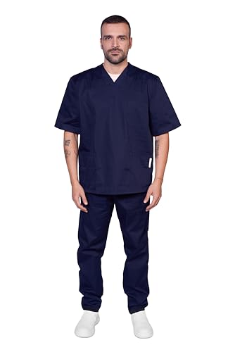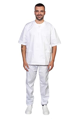 fratelliditalia.org Krankenhaus-Uniform aus Baumwolle, Kasack und Hose mit V-Ausschnitt Unisex, hellblau, XXL