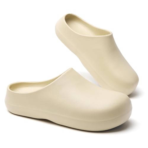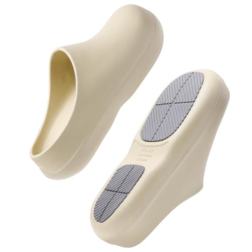 FRTUBOP rutschfeste Arbeitsschuhe Clogs für Damen Herren – wasserdichte Ölbeständige Kochschuhe mit Gummi Antirutschsohle, für Küche, Krankenhaus, Pflege, Gastronomie, Garten, Beige 42/43