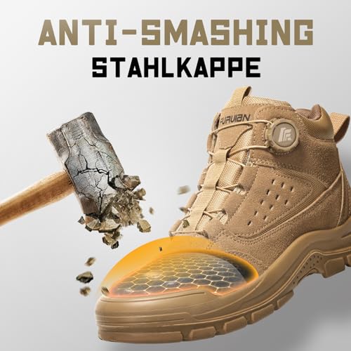 Furuian Arbeitsschuhe Herren Leicht Sicherheitsschuhe Herren Hoch Arbeitsschuhe Damen rutschfest Stahlkappenschuhe Sportlich Sicherheitsschuhe Damen Arbeitsstiefel mit Drehverschluss