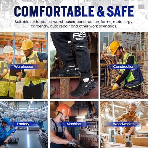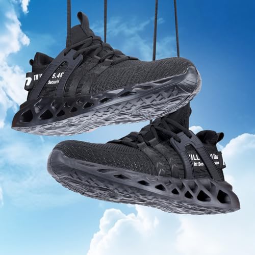 Furuian Stahlschuhe für Damen und Herren, leichte, bequeme Sicherheitsschuhe mit Stahlkappe, Arbeitsschuhe, 783 – Schwarz, 38 EU