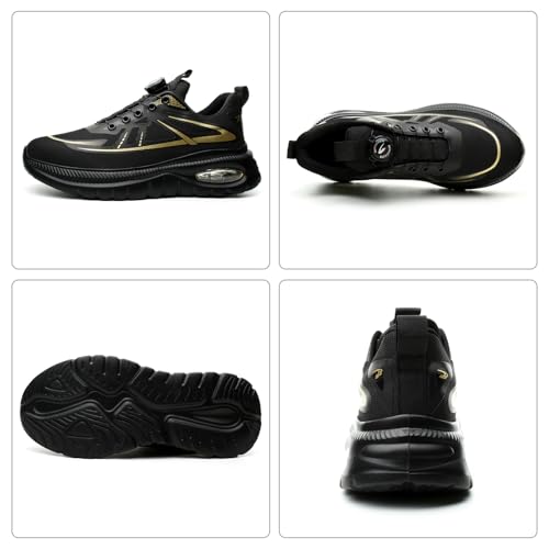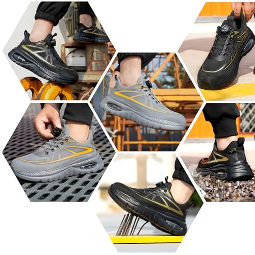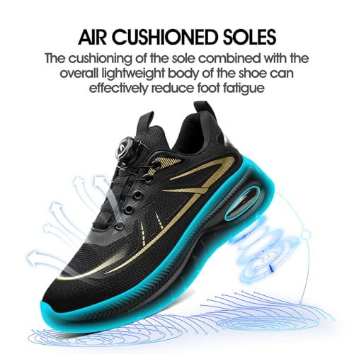 GemChve Sicherheitsschuhe Herren Arbeitsschuhe Damen Leicht rutschfeste Luftkissen Stahlkappenschuhe mit Drehverschluss Black 43EU
