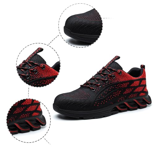 Generisch Paar Herren-Sicherheitsschuhe mit Stahlkappe, Herren-Sicherheitsschuhe mit Zehenschutzkappe Verbundmaterial, Bequeme Laufschuhe, rutschfeste Arbeitsschuhe, unzerstörbar (Red, 36)