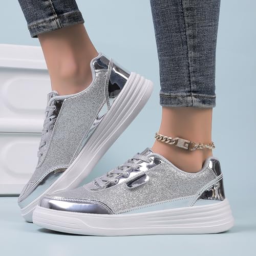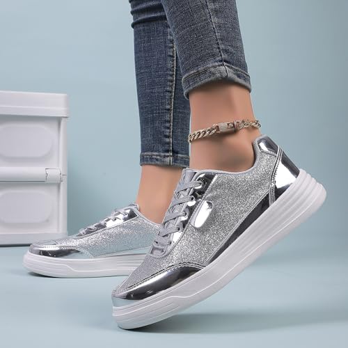 Generisch Pailletten Schuhe Damen, Sneaker & Sportschuhe Für Damen Glitzer Winter Festliche Joggingschuhe Flache Straßenlaufschuhe Leichte Walkingschuhe Glänzende Trekkingschuhe Bequeme Arbeitsschuhe