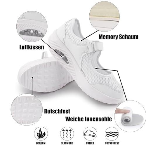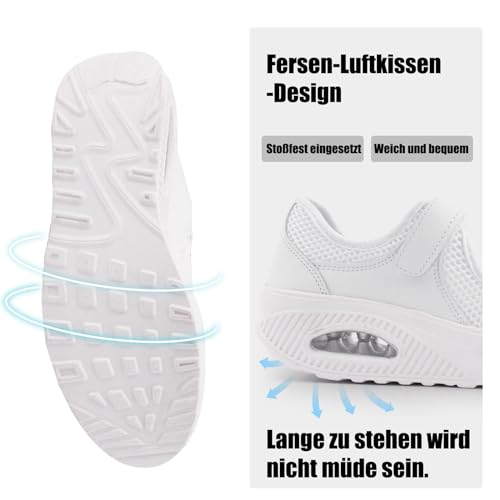 Git-up Damen Walking Schuhe mit Klettverschluss Atmungsaktives Vermascht Krankenschwester Schuhe Leichtes Memory Schaum Luftkissen Sneaker, Weiß 39