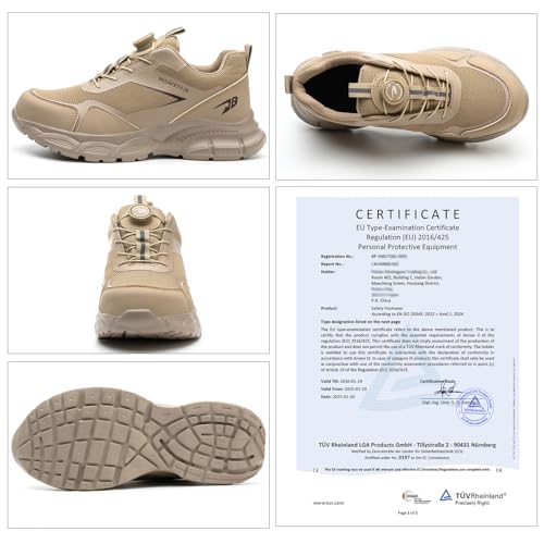GUDECIUS Arbeitsschuhe Herren Damen Sicherheitsschuhe Leicht Stahlkappenschuhe Arbeitsschutzschuhe mit Stahlkappe Arbeit Versicherung Schuhe Unisex Atmungsaktiv rutschfest Khaki 44 EU