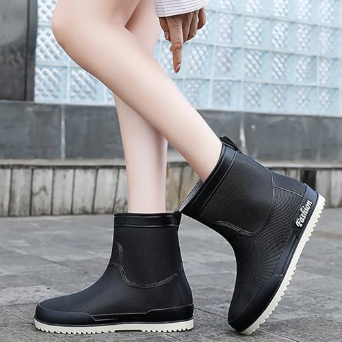 Gummistiefel Damen,Mode Bequeme Schlupfschuhe,Wasserdicht Halbhoch Regenstiefel,Winddicht Abriebfest Arbeitsschuhe,Rutschfester Angelstiefel,Outdoor Schlamm Garten Regenstiefel