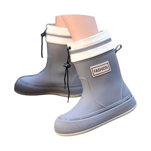 Gummistiefel Damen,Mode Freizeit Halbhoch Regenstiefel,Warm GefüTtert Regenschuhe,Wasserdicht Gartenschuhe,Rutschfester Abriebfest Arbeitsschuhe,Dicker Sohle Schlupfstiefel,Outdoor Angelstiefel
