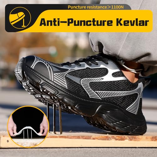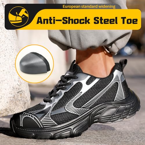 GUYISASH Herren Arbeitsschuhe Stahlkappe Schwarz Industrie Bauschuhe Freizeit Größe 47, Schwarz, 42.5 EU