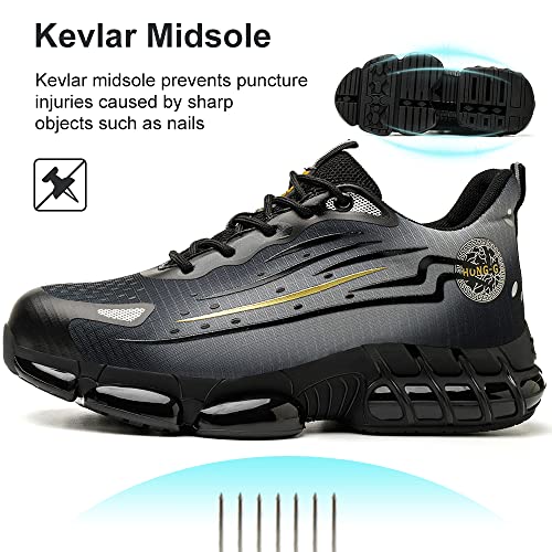 HAIMAYEE Sicherheitsschuhe Herren S3 Leicht 43 Arbeitsschuhe mit Stahlkappe Sommer Arbeit Schuhe Männer Sicherheit Sneaker Kevlar Schutzschuhe für Kinder Jungen Grau Schwarz