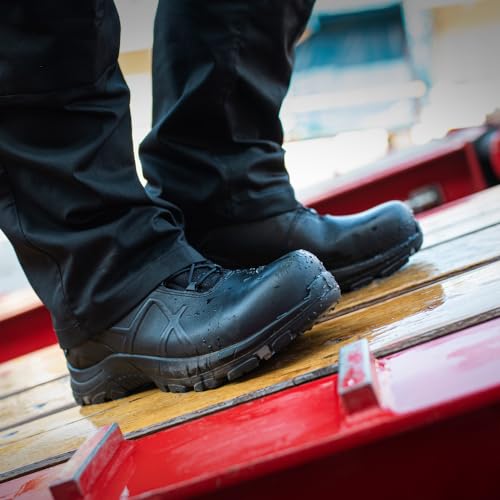 Stilvoller Schutz, der im Arbeitseinsatz wirklich überzeugt: Der HAIX Black Eagle Safety 50.1 Low verbindet Leichtbau mit maximaler Sicherheit. Dank wasserdichter GORE-TEX-Technologie bleiben deine Füße auch bei feuchtem Wetter trocken, damit du konzentriert arbeiten kannst. Die Sicherheitsschuhe der Klasse S3 bieten zuverlässigen Schutz vor herabfallenden Gegenständen und Stößen, während das robuste Leder-Obermaterial Halt gibt. Gleichzeitig sorgt eine atmungsaktive Konstruktion für ein angenehmes Fußklima, sodass du auch lange Schichten frisch bleibst. Die geschlossene Zehenkappe schützt vor Verletzungen und macht den Schuh zu einer verlässlichen Begleitung in rauen Arbeitsumgebungen. Ob in Industrie, Handwerk oder Logistik – der Low-Schnitt bietet Bewegungsfreiheit ohne Kompromisse beim Schutz.