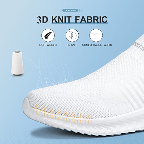 Hanani Slip On Sneakers Herren Damen Nurse Schuhe Walkingschuhe Outdoor Turnschuhe Sportschuhe Gym Bequem Leichte Schuhe Atmungsaktiv Freizeitschuhe Memory Foam Fitness Sporthalle Weiß EU39